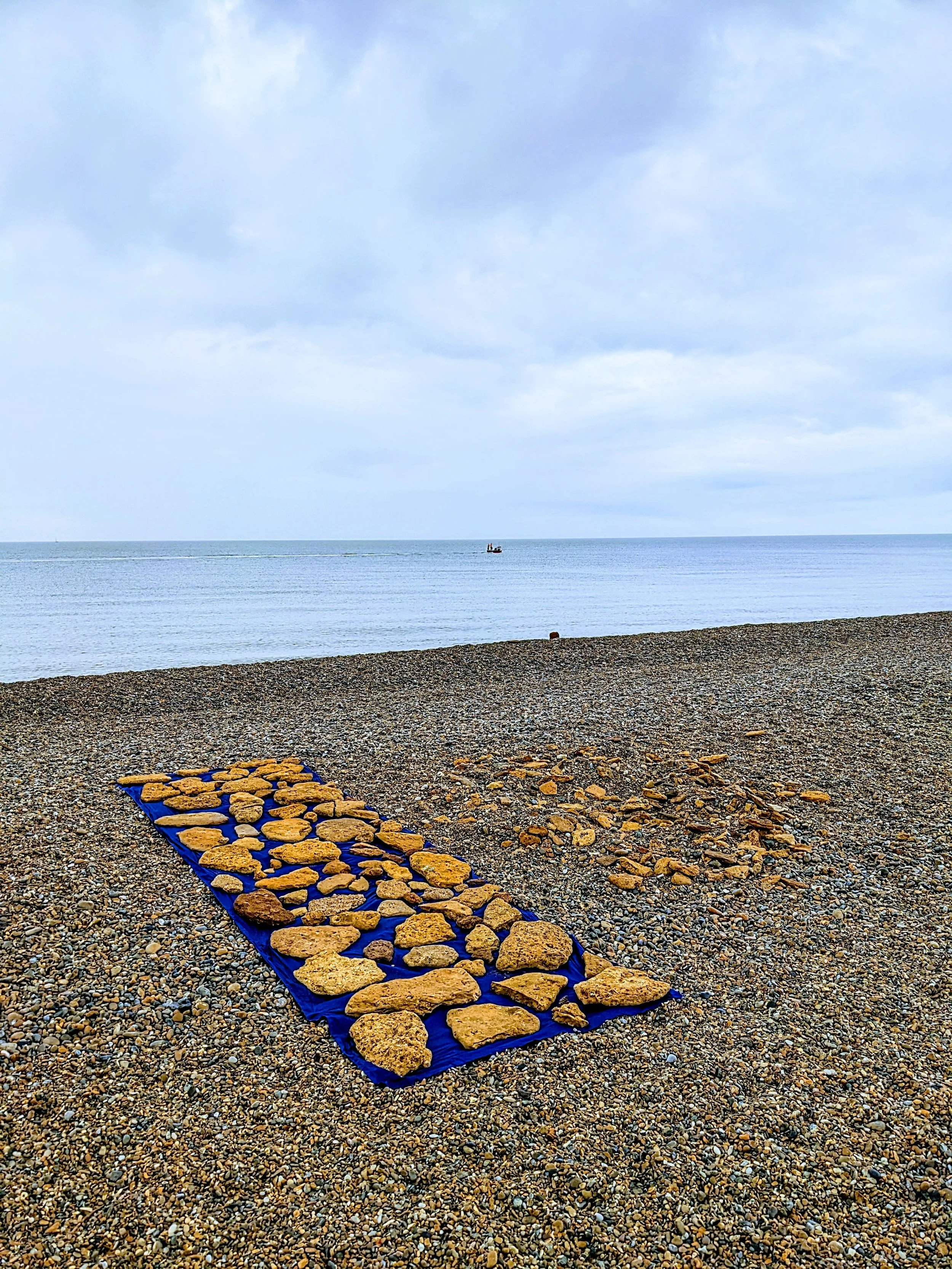 At the end of 2022, I found my personal process matching the increasingly tied looking cairn; who was more in need of repairs? Walking down to the beach, I had meant to build the existing one higher but the shape looked wrong so I soon found myself dismantling the whole thing over the course of a couple of days. I had to dig hard to get all of the pieces out of the shingle as the sea had buried a good foot or two of it; revealing the foundation felt satisfying, a blank canvas of sorts, a hole to grieve in—the sea washes everything away, all water eventually ends in the ocean.